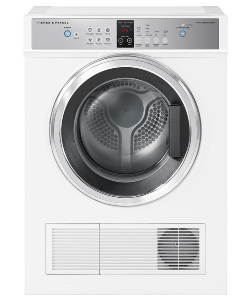 RRP; $849, Fisher & Paykel 7kg Series 5 Vented Dryer Dimensions; H830mm x W600mm x D575mm model; DE7060G2 features; white finish