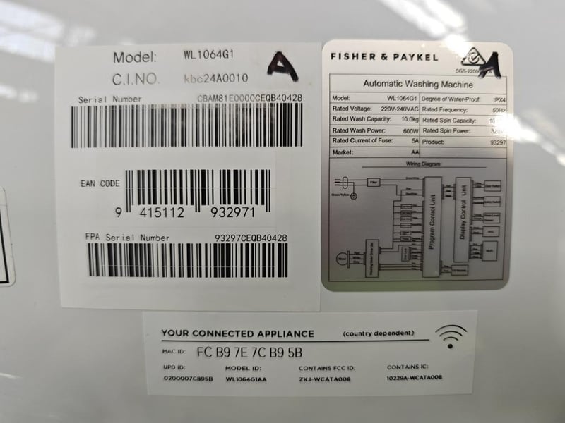 RRP: $1499, Fisher & Paykel 10kg Top Load Washer 14 washing programs including Bulky, Cottons, Delicate, Drum Clean and Hygiene, this machine can handle any fabric type with ease Approximate Dimensions: H 109cm x W 64cm x D 65cm Model: WL1064G1 Serial Number: CBAM81E0000CEQB40428