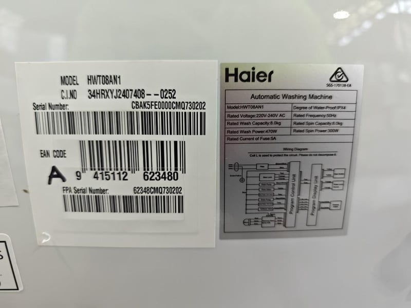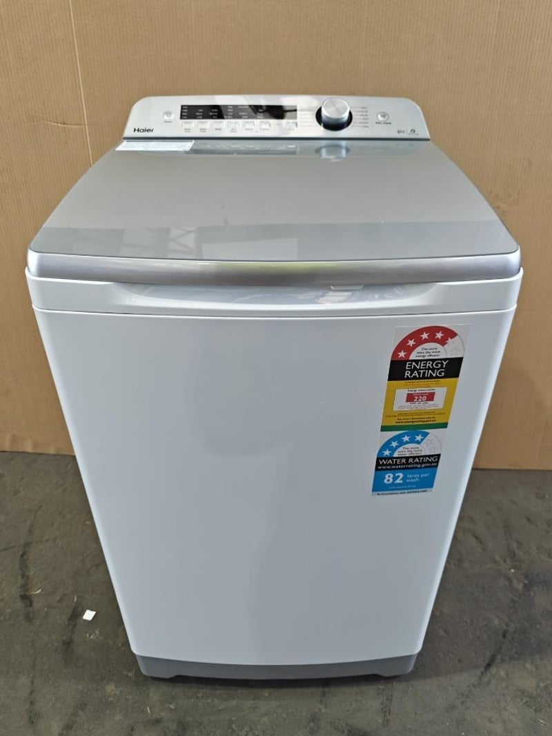 RRP: $999, Haier 8kg Top Load Washer 4 star WELS water rating for outstanding water efficiency. With 12 versatile programs to choose from, including Bulky, Cottons, Delicate and Wool, you'll find the perfect cycle for all fabric types. The Hygienic cycle eliminates up to 99.9% of germs and bacteria for peace of mind when washing kids clothes or sports gear. Approximate Dimensions H 101cm x W 58cm x D 59cm Model: HWT08AN1 Serial Number: CBAK5FE0000CMQ730202