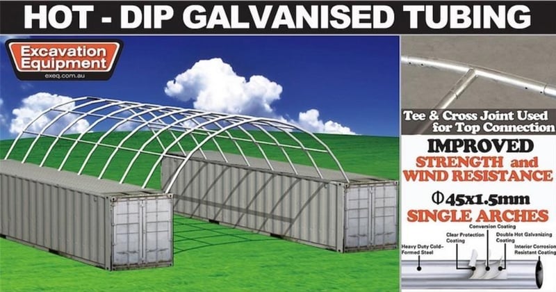 Unused Heavy duty 40ft Container Shelter, Model: C2040 - 20ft wide, No end wall, 40ft long x 6ft 6in High, Heavy duty PVC fabric, Galvanised tube frame, Approximate Shipping Dimensions: 1930mm L x 750mm W x 480mm H, Approximate Weight: 328kg