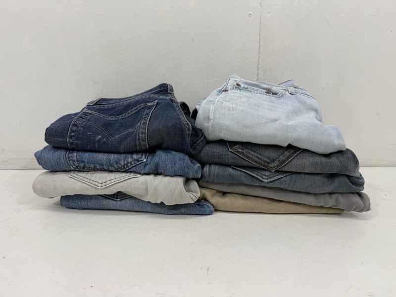 RRP-$675, Jeans, assorted styles/ colours/ brands, Sizes:W28QTY:9 Sold as lot.