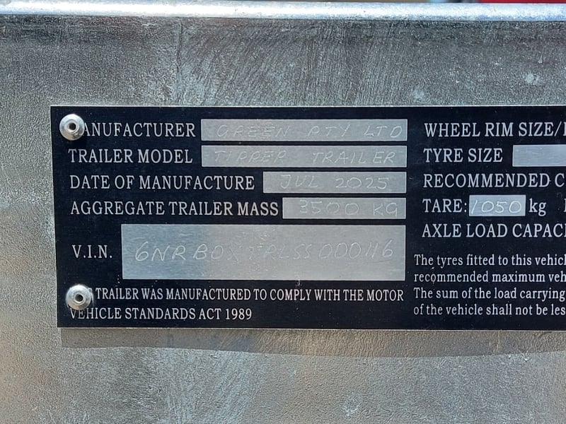 Size: 2.97m (tipper only), 1.93m W, 4.8m Overall L, 2.15m H APPROX DIMS