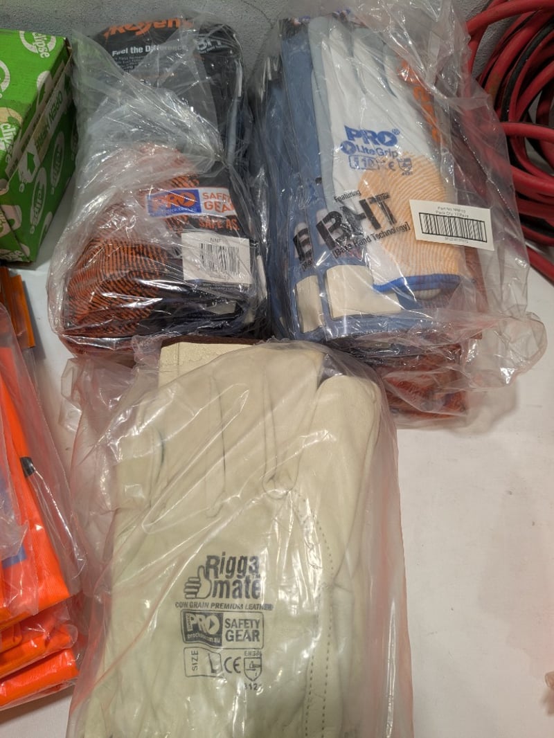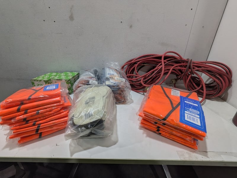 Assorted items includes high visibility vest, heavy duty gloves and more..Note: Sold as a lot.Note: Signs of wear and tear.