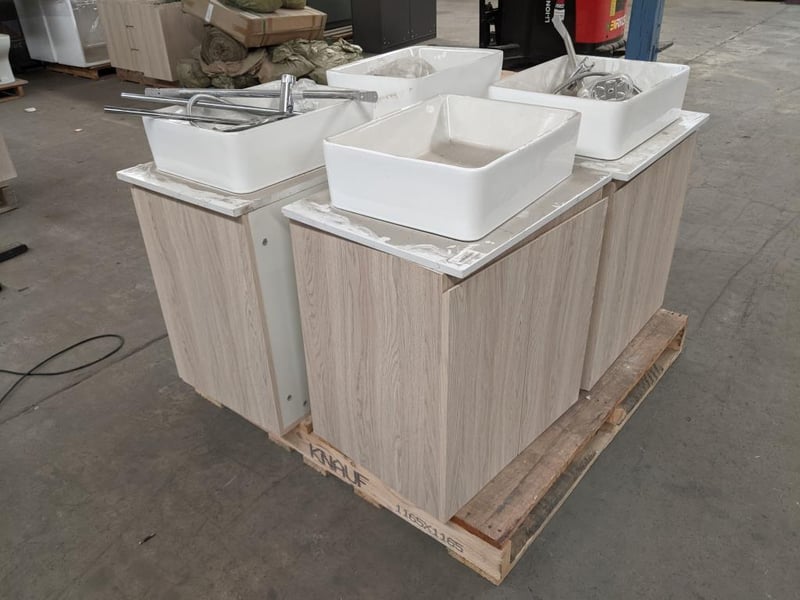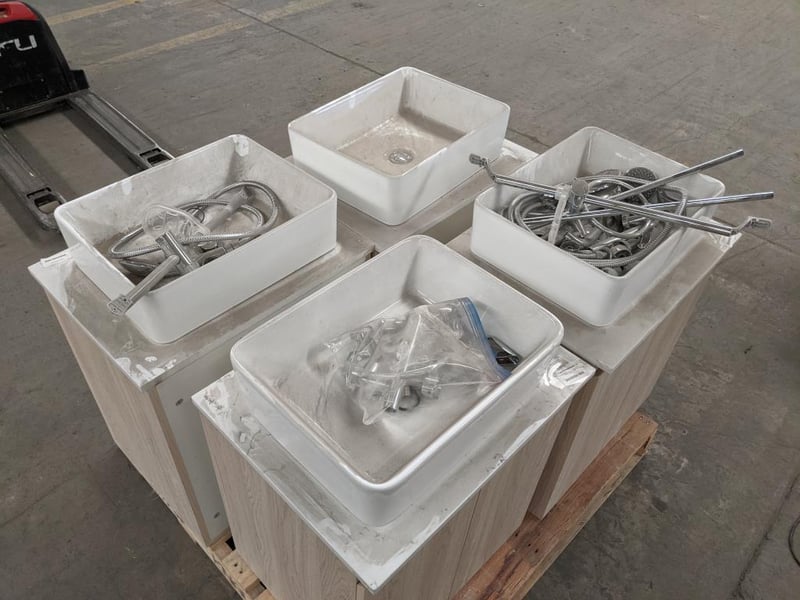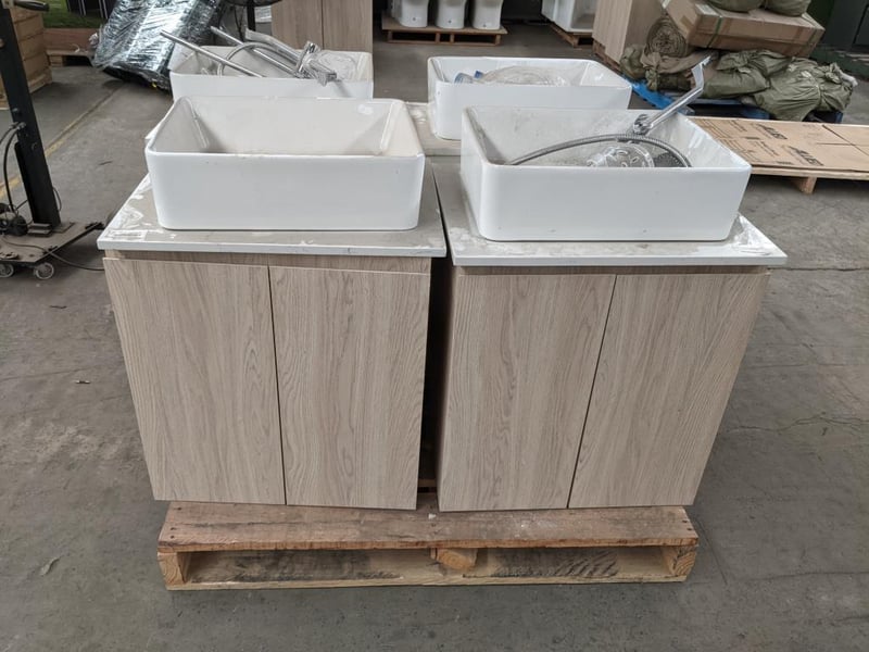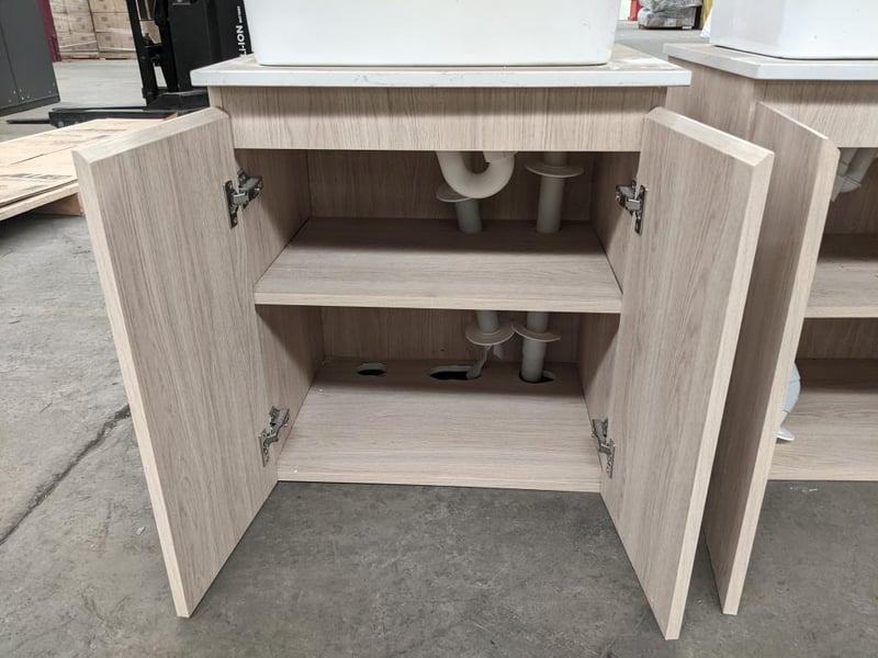 Vanity sinks. marble top finish, 2 tier storage cabinet, Qty of 4x units