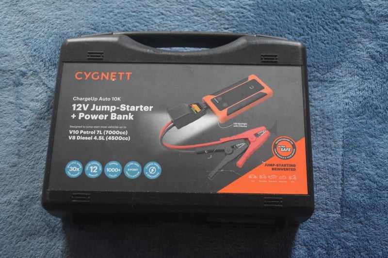 12V Portable Jump Starter pack, made by Cygnett, up to V10 Petrol and V8 Diesel cars, in Box.