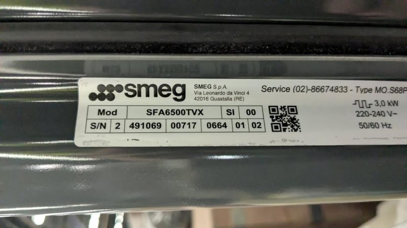 Oven, Smeg, Stainless Steel, SFA65000TVX Dimensions: 65CM X 60CM X 60CM Bid Per Each Note: Some Units might have Marks, Dents and/or Scratches. Units were incorrectly installed and removed. Not used or tested. Potential damage to power cables