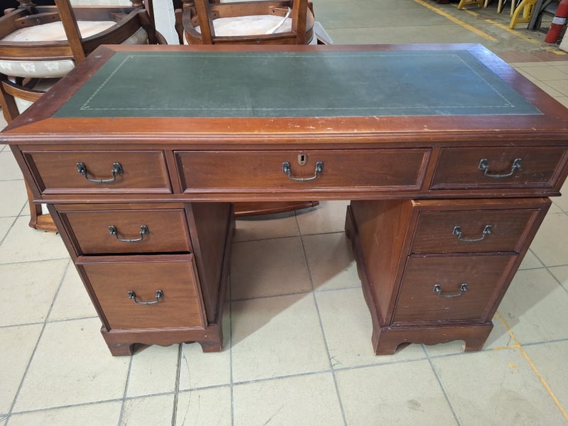 Twin Pedestal Desk, Timber Style, Brown Finish