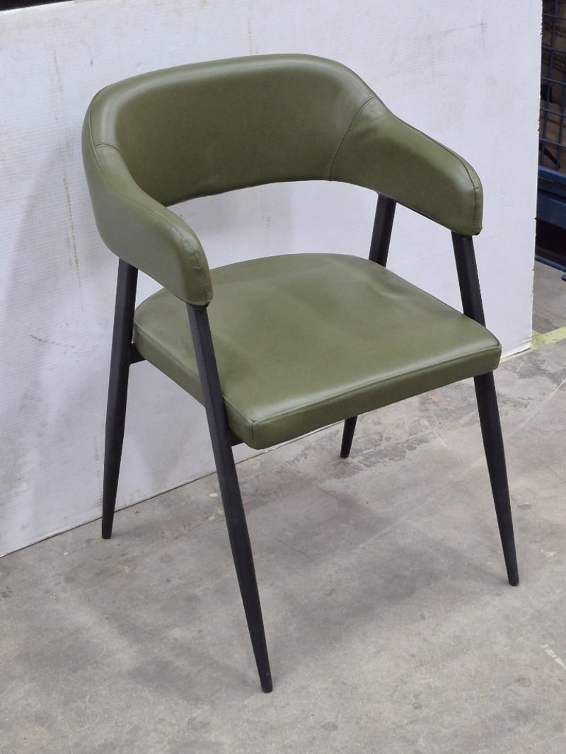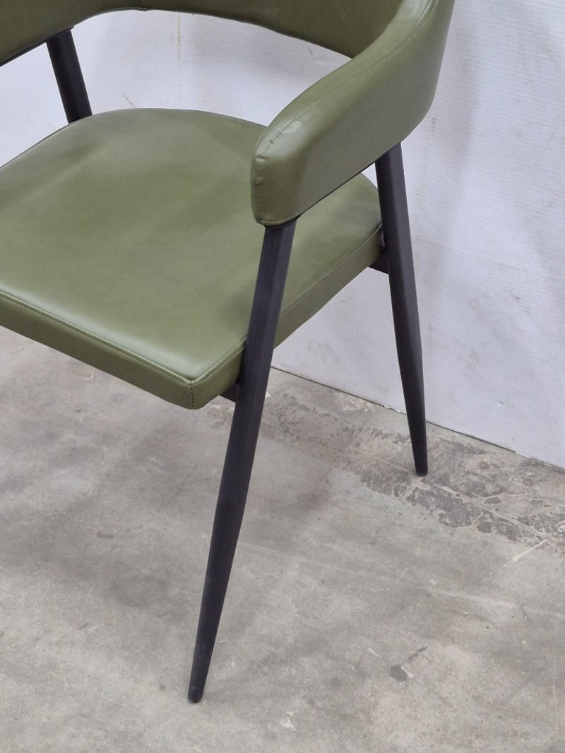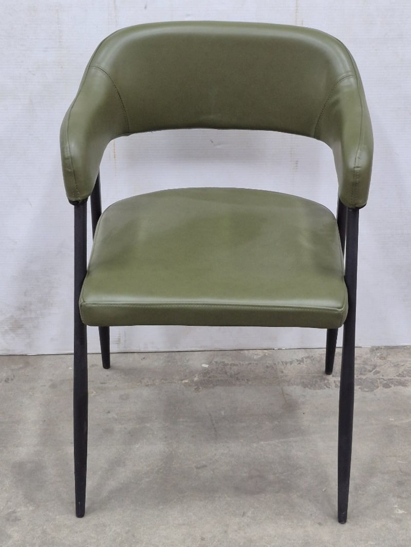 Arm Chair, Contemporary Styled, PU Leather Upholstery, Black Metal Legs, Olive Green