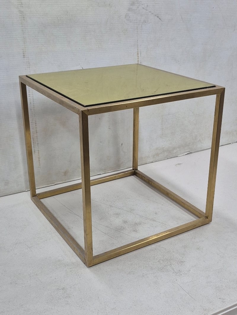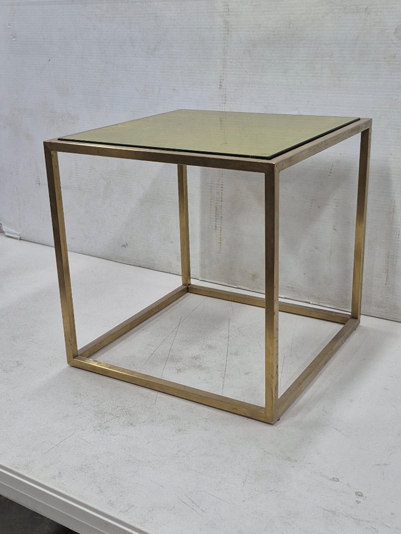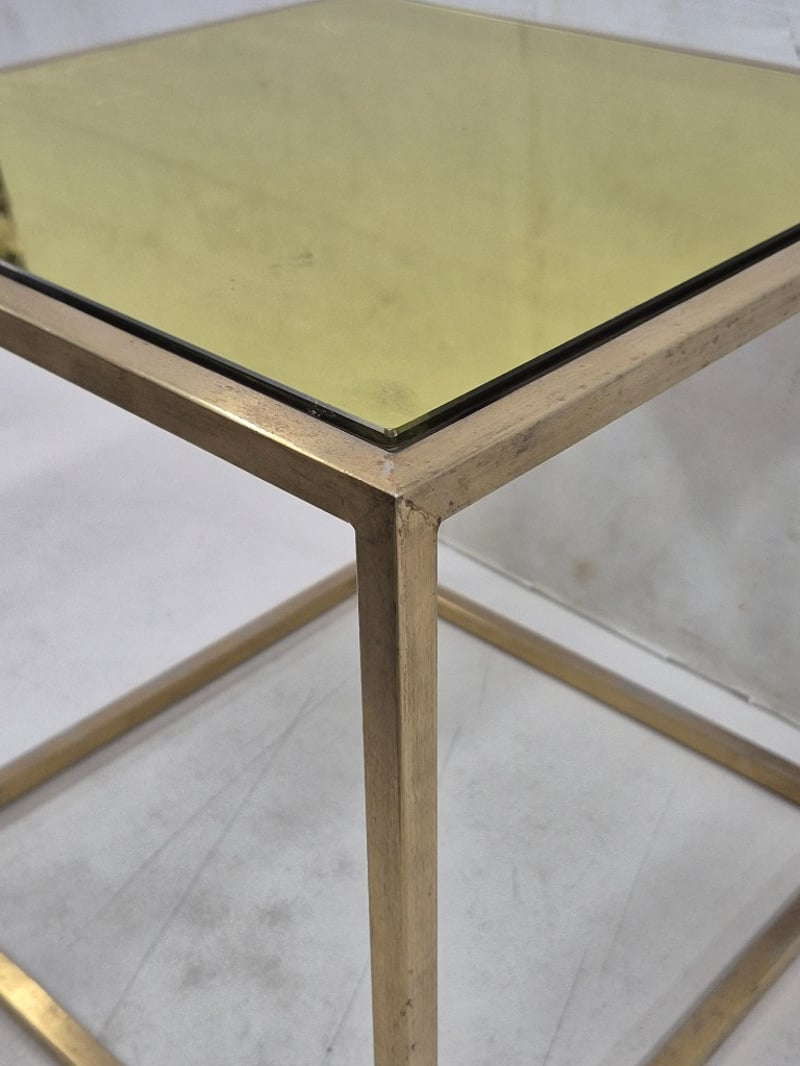 Contemporary Coffed Table, Brushed Gold Finish, Tinted Glass Top, Brushed Gold Finish is fading in spots
