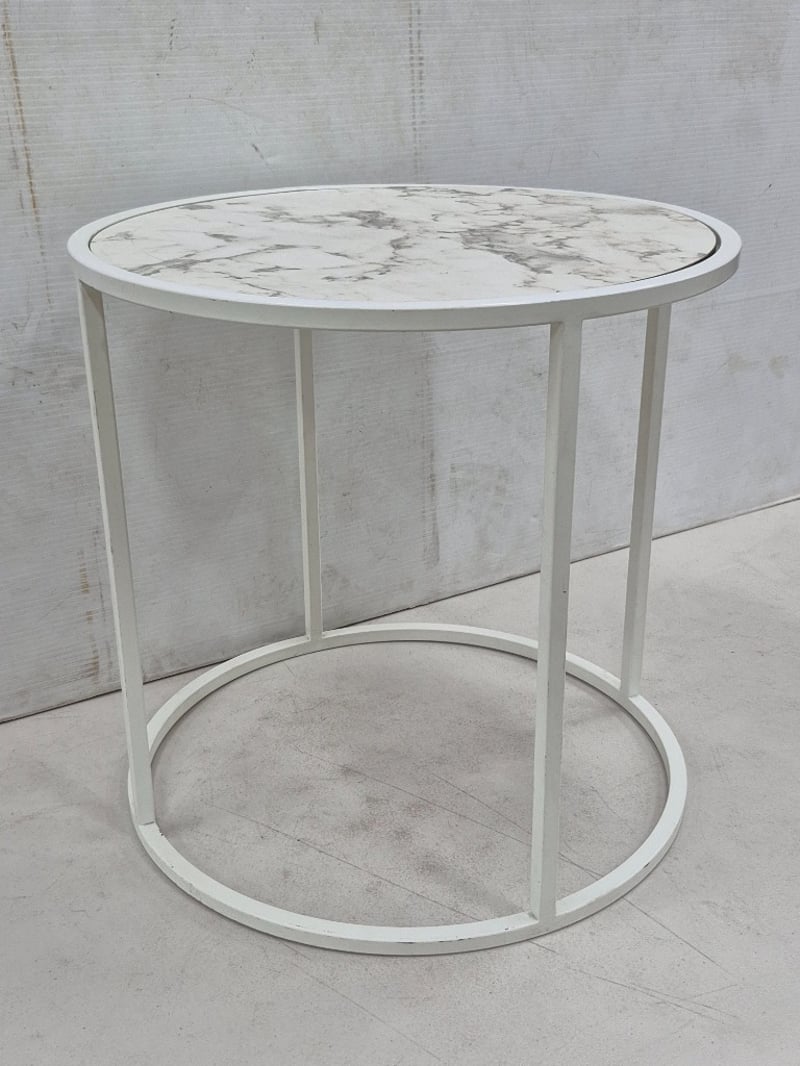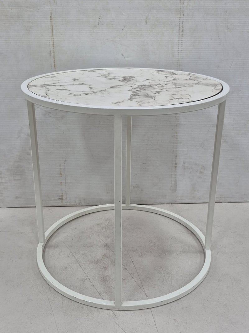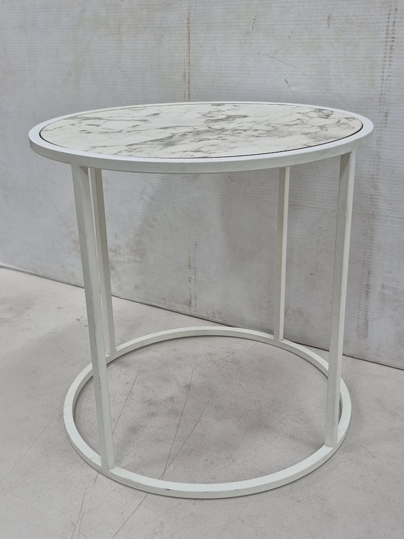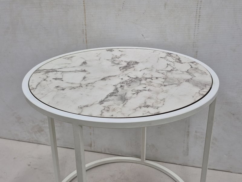 Small Contemporary Coffee Table, Marble Styled White Top,