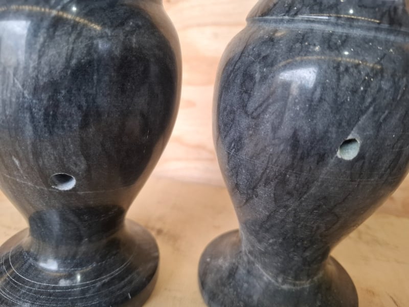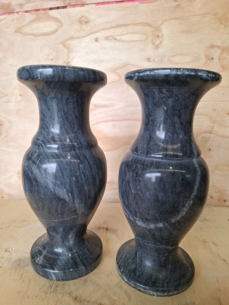 2x Natural Marble Cemetery Vase, with Draining Holes Dimensions: 23cm (H), 9.8cm Diameter