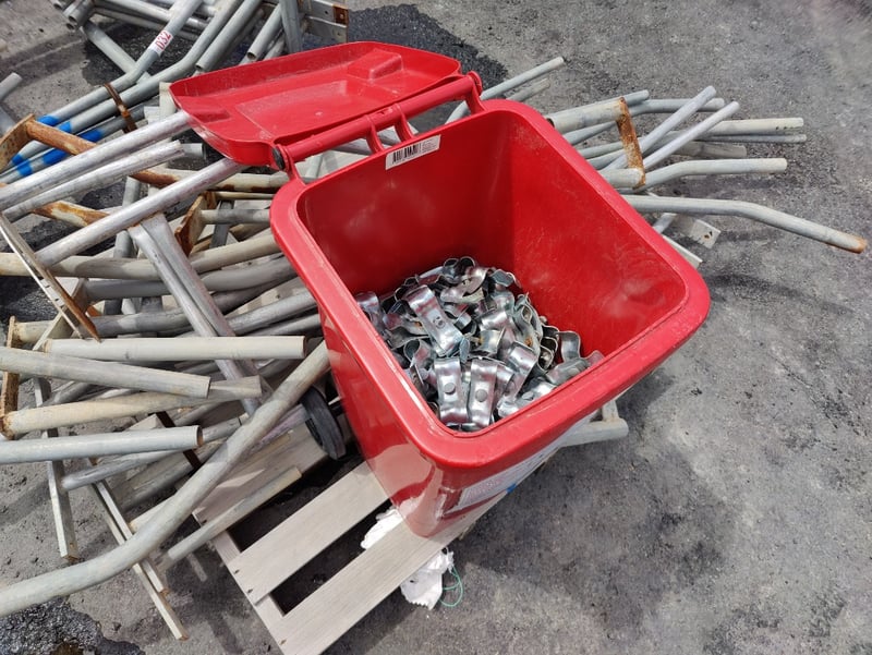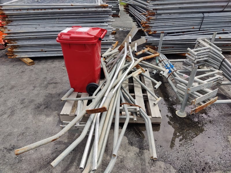 Pallet Of Steel Fence Ends, Various Sizes, Bin Of Fittings