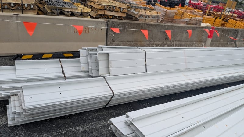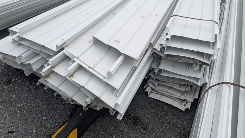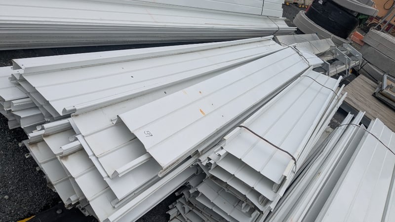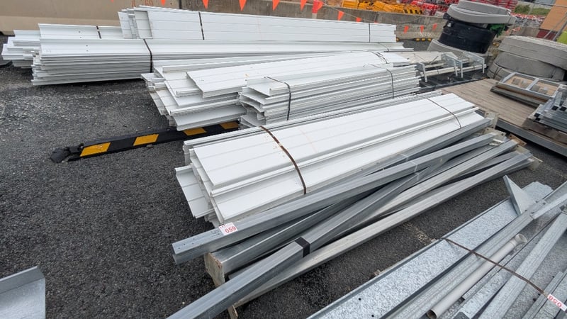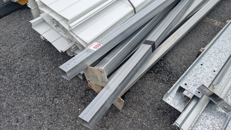 Assorted Metal Roofing Components, Includes Panels, and Galvanized Bracing, Quantity to Stacks