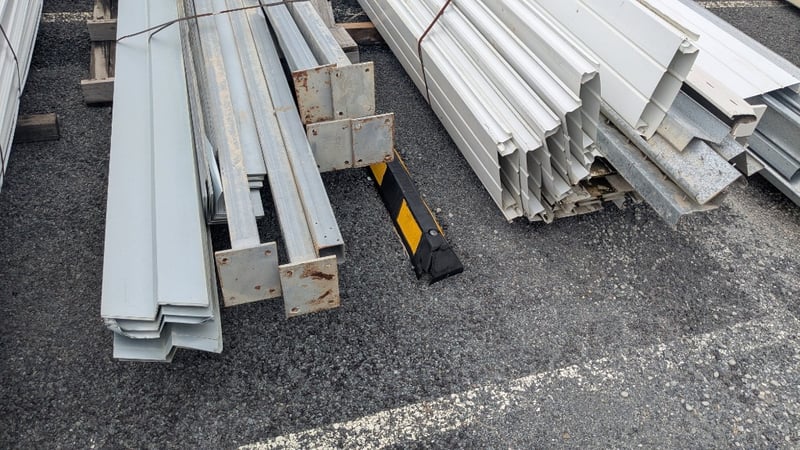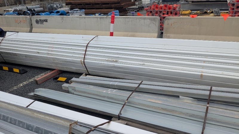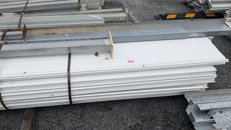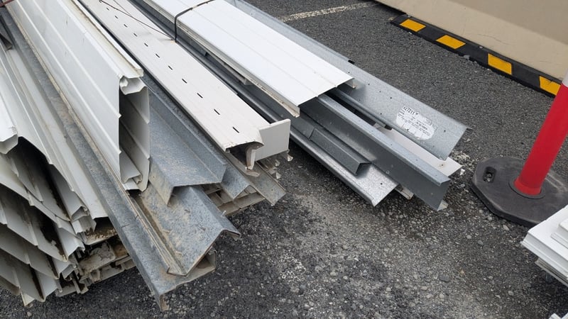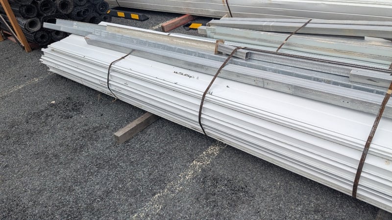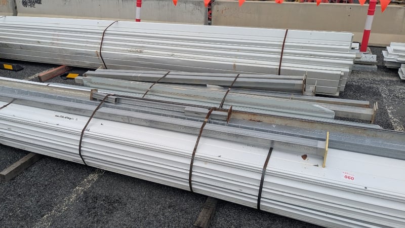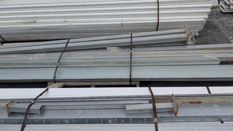 Assorted Metal Roofing Components, Includes Panels, and Galvanized Bracing, Quantity to Stacks