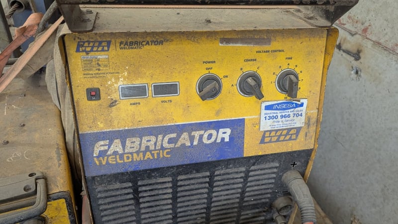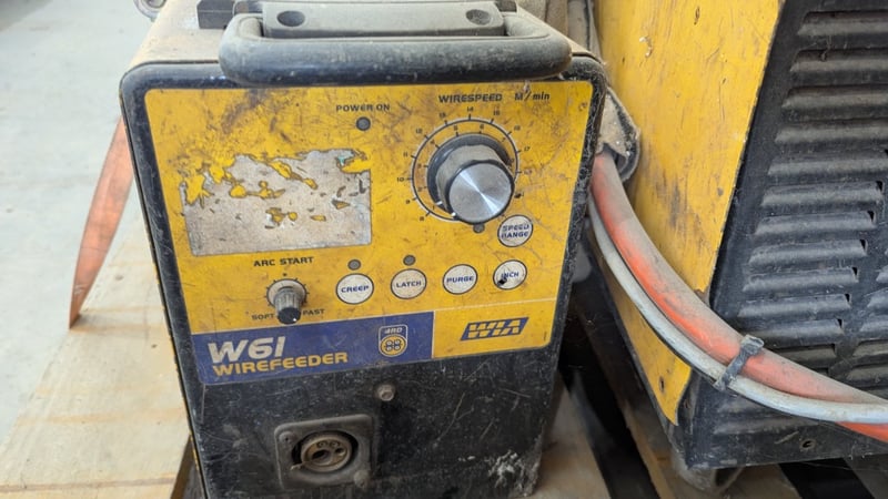 WIA Fabricator Weldmatic with W61 Wire feeder, 3 Phase Power, On Casters