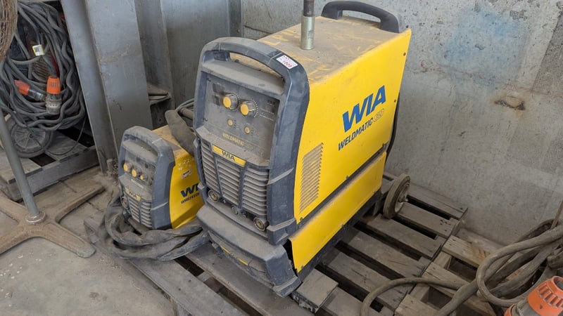 WIA Weldmatic 350 with W67 Wire feeder, 3 Phase Power, With Wheels