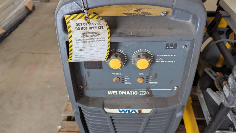 WIA Weldmatic 350 with W67 Wire feeder, 3 Phase Power, DeWalt Table Saw, Model: DWE7491, Both Have BeenTagged Out , Quantity 2