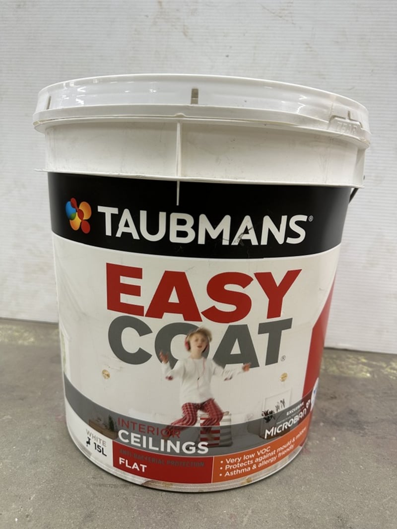 Paint, Taubmans, Easy Coat, Interior Ceilings, Flat, White, 15L Tin