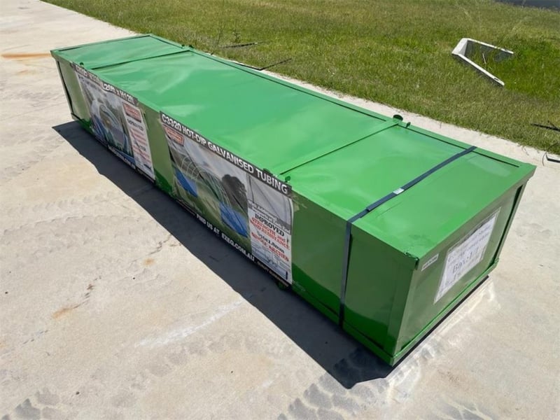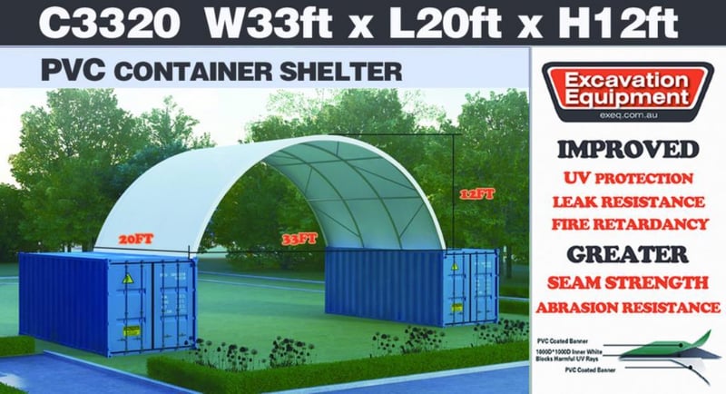 Unused Heavy duty 20ft Container Shelter, No End Wall, Model: C3320, 20ft long x 33ft wide x 12ft high, Heavy duty PVC fabric, Galvanised tube frame, Approximate Shipping Dimensions: 2830mm L x 750mm W x 530mm H, Approximate Weight: 490KgsLocation: Muchea, Perth WARef: 168136
