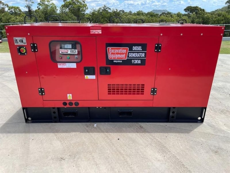 Unused Silenced 110kVA Generator, Model: EXEQ-113-3, 4 Cylinder Turbo Diesel Engine, Single & 3 Phase Outlets, Emergency Stop, Battery Isolator, Fork Pockets, Lifting point, Sound Insulation, Comes with Manual, Approximate Shipping Dimensions: 2500mm L x 1100mm W x 1300mm H, Approximate Weight: 1500kg, Serial No: 25040224