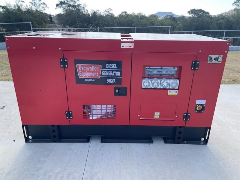 Unused Silenced 60kVA Generator, Model: EXEQ 60-3, 4 Cylinder Turbo Diesel Engine, Single & 3 Phase Outlets, Emergency Stop, Battery Isolator, Fork Pockets, lifting point, Sound Insulation, Comes with Manual, Approximate Shipping Dimensions: 2250mm L x 930mm W x 1250mm H, Approximate Weight: 1050kg, Serial No: 25110337