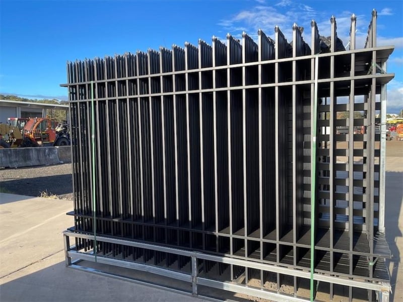 Qty of 24 Unused Wrought Iron Style Fence Panels, Comes with 24 Panels + 25 Posts, Each Panel is 10ft wide x 6ft 6in High, Rack Shipping Dimensions: 2.99m W x 1.1m L x 2.17m H, Weight: 950KgsLocation: Muchea, Perth WARef: S08453B
