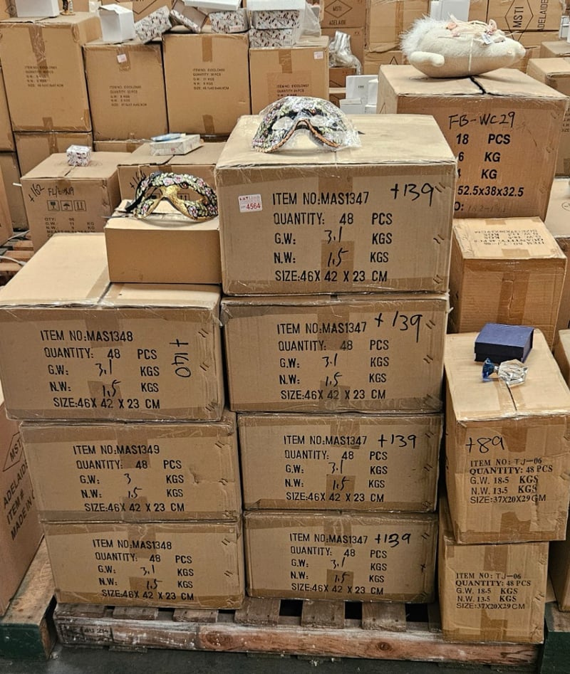 **UNRESERVED** Giftware, Pallet of Assorted Items Including Plush Cat Toys, Decorative Masks and more.