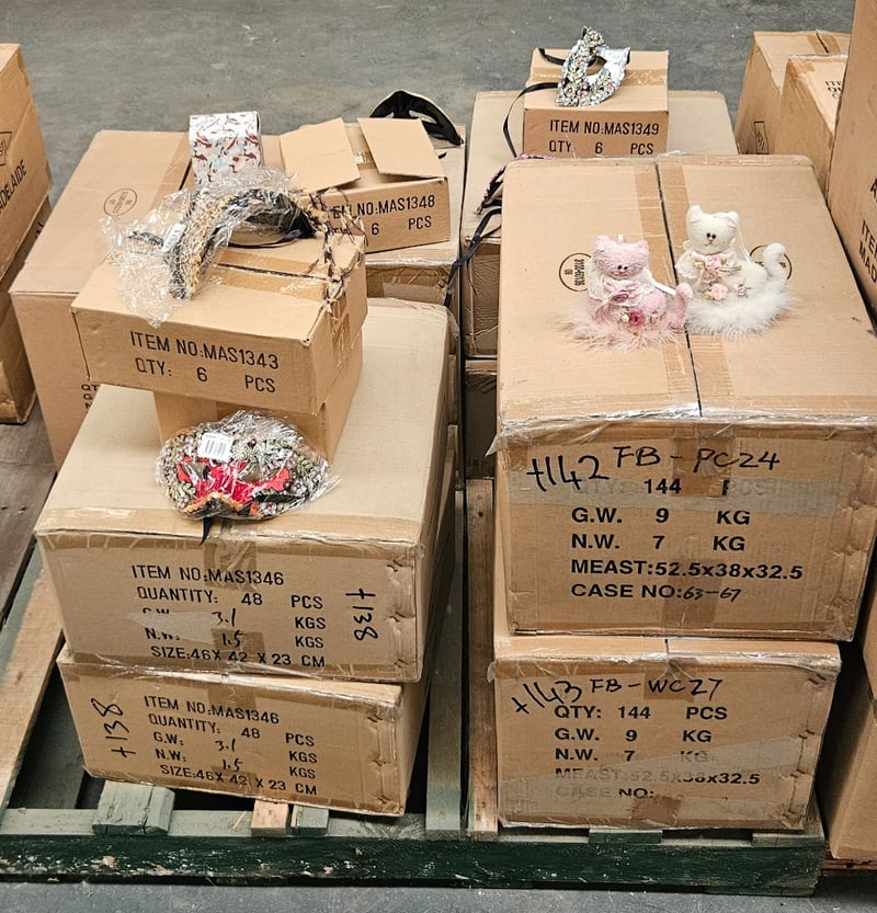 **UNRESERVED** Giftware, Pallet Of Assorted Items Including Soft Cat Toys, Decorative Masks and more