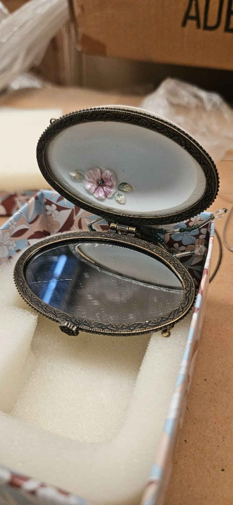 **UNRESERVED** Giftware, Pallet of Assorted Items Including Decorative Oval Compact Hodler with Mirror and Coffee Cup Style Jewellery Holder.Sold as lot