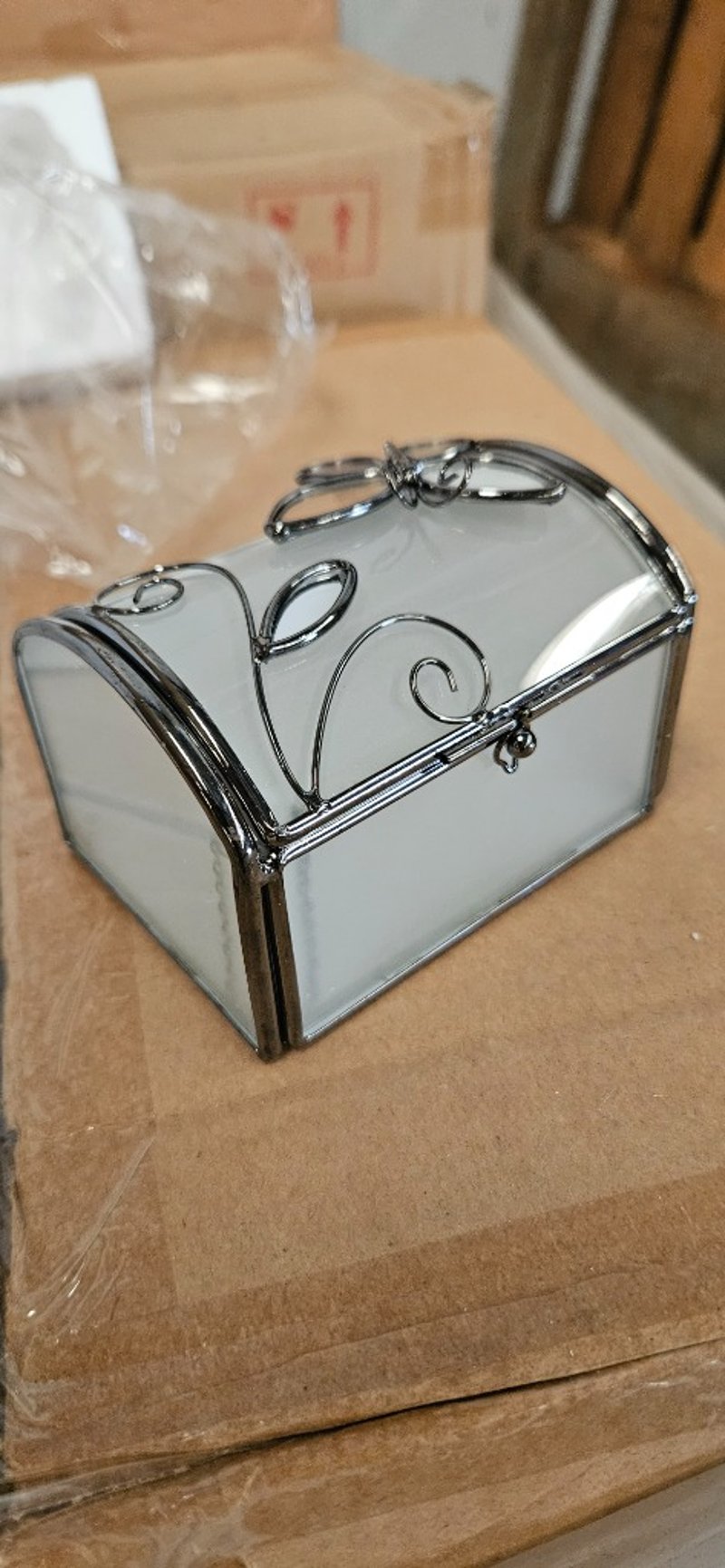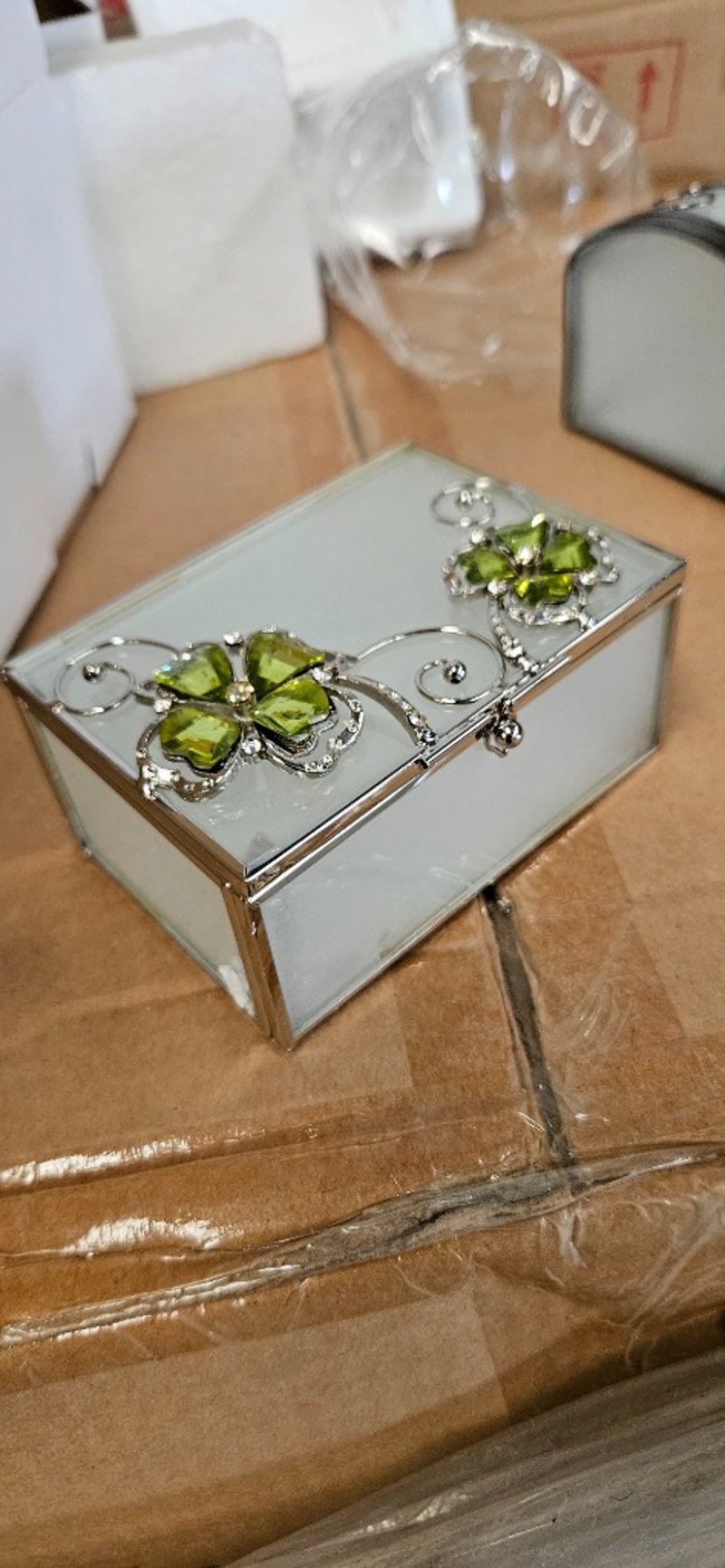 **UNRESERVED** Giftware, Pallet of Assorted Items Including Glass Style Jewellery Boxes with Floral and Butterfly styles.Sold as lot