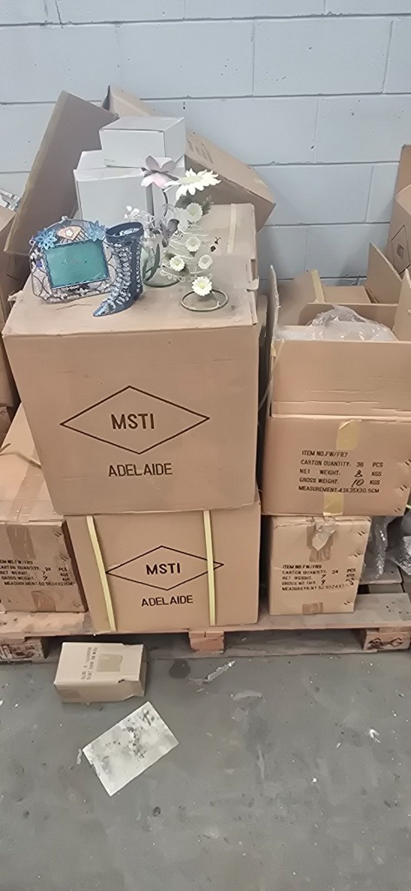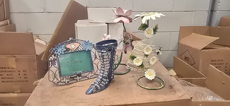 **UNRESERVED** Giftware, Pallet of Assorted items including flower candle holders, metal shoe candle holders and more