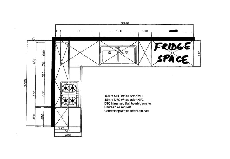 New / Unassembled Flat Pack L-Shape Kitchen Kit (Complete Set)A complete, modern L-shape flat pack kitchen kit, ideal for new builds, renovations, investment properties, or DIY projects. This kit includes all essential base and wall cabinetry, benchtops, sink, and hardware required for installation.Each Kitchen Kit Includes:Base Cabinets:• 1 × 450mm Base Drawer Cabinet (3 drawers)• 1 × 600mm Base Oven Cabinet• 2 × 300mm Base Cabinets (single door)• 1 × 900mm Base Corner Cabinet (single door)• 1 × 900mm Base Sink Cabinet (double door)Wall Cabinets:• 1 × 450mm Wall Cabinet (single door)• 1 × 600mm Wall Rangehood Cabinet (double door)• 1 × 900mm Wall Cabinet (double door)Benchtops:• 1 × 20mm White Particle Board Benchtop – 2000 × 600mm• 1 × 20mm White Particle Board Benchtop – 1638 × 600mmSink:• Double bowl stainless steel kitchen sink (1 + ¾)• Size: 1280 × 500 × 250mmIncluded Hardware & Fittings:• Hinges, screws, locking pins• Metal handles• Adjustable PVC legsImportant Notes:Kitchen appliances shown in renders/images are NOT included.Flat pack – assembly required.