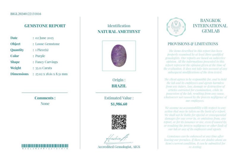 33.11 CARATS CERTIFIED NATURAL AMETHYST