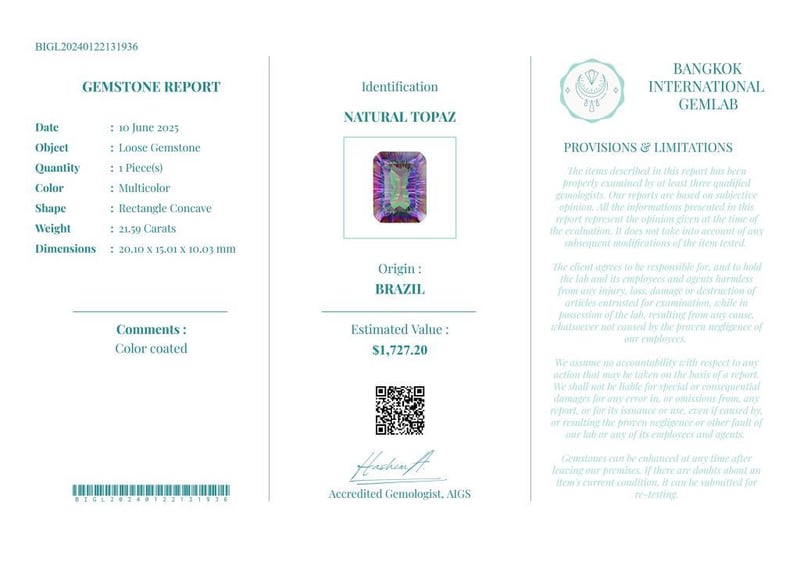 • Verify Report Online At Www.Bangkokinternationalgemlab.Co