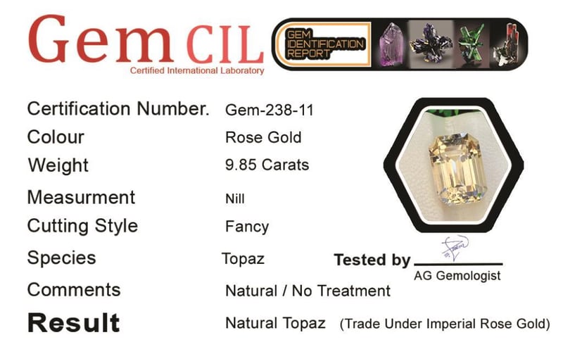 9.85 CARATS NATURAL IMPERIAL ROSE GOLD TOPAZ 9.85 Carats Natural Imperial Rose Gold Topaz Stone = Natural TopazWeight = 9.85 Carats Colour = Rose Gold Cut = Fancy Lustre = Excellent Treatment = Natural, No TreatmentQuality = Vvs (Premium)Note = Precise Custom Cut (Not Commercial) Condition: Good - Refer Images 0488464+11