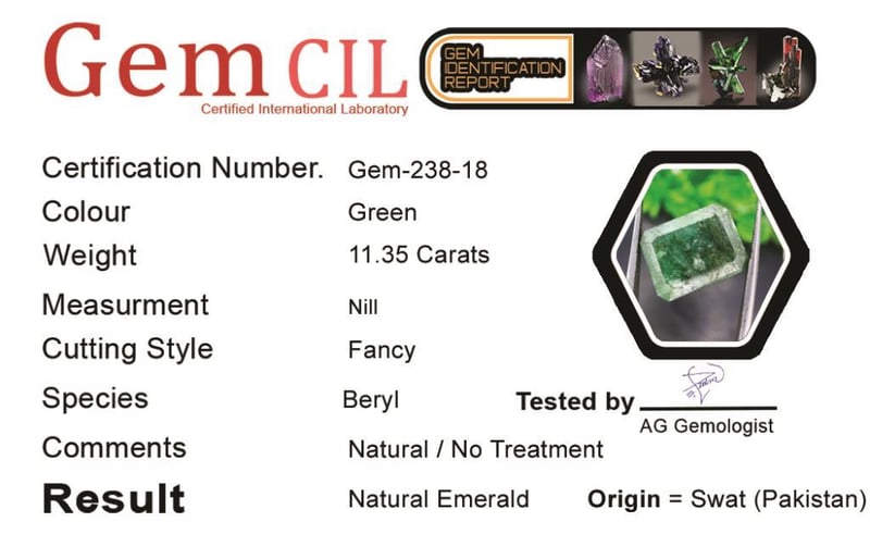 11.35 CARATS NATURAL GEMMY EMERALD 11.35 Carats Natural Gemmy Emerald Stone = Natural EmeraldWeight = 11.35 Carats Colour = Green Cut = FancyLustre = Excellent Treatment = No Oil (Natural)Origin = Swat (Pakistan) Condition: Good - Refer Images 0488464+18