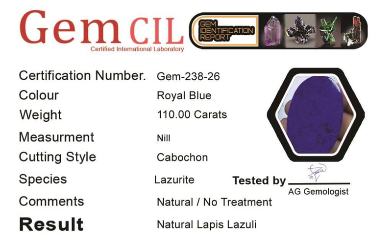 110.00 CARATS NATURAL ROYAL BLUE LAPIS LAZULI 110.00 Carats Natural Royal Blue Lapis Lazuli Stone = Natural Royal Blue Lapis LazuliWeight = 110.00 CaratsTreatment = Natural (Not Dyed) Cut = Cabochon Note = Gem Cil, Certified, Condition: Good - Refer Images 0488464+26