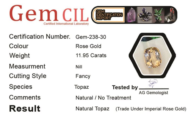 11.95 CARATS NATURAL IMPERIAL ROSE GOLD TOPAZ