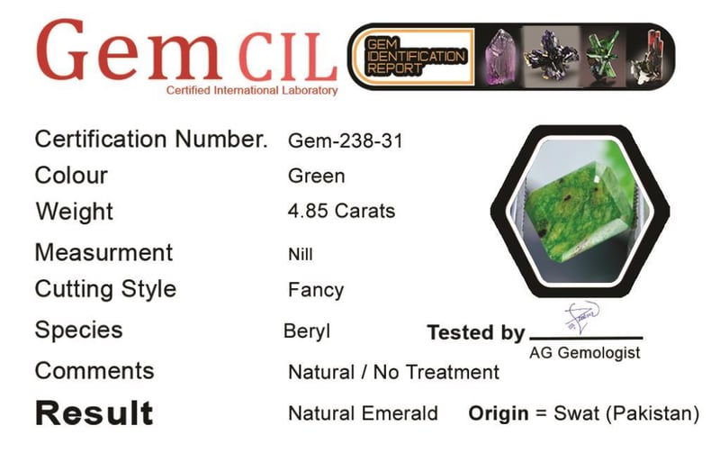NOTE = GEM CIL, CERTIFIED, PRECISE CUSTOM CUT (NOT COMMERCIAL)