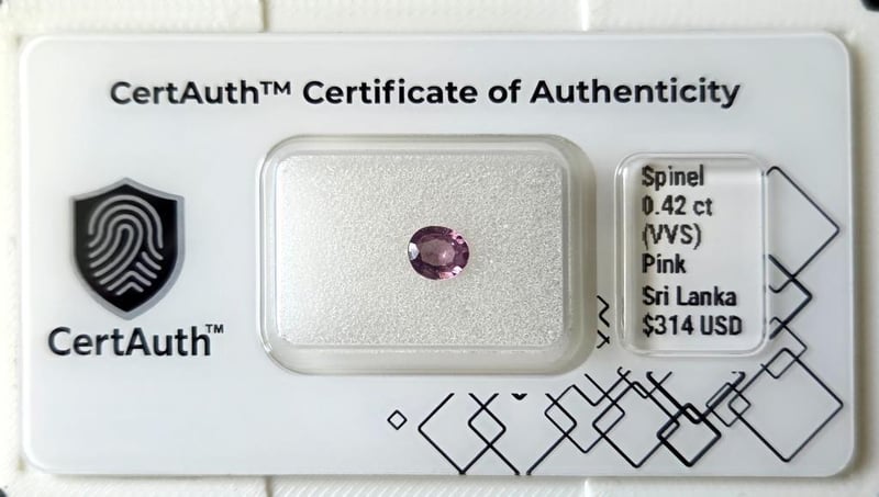 NATURAL 0.42CT PINK SPINEL – OVAL CUT – VVS – SRI LANKA (CEYLON) – CERTAUTH CERTIFIED This Natural Spinel Displays A Delicate Pink Colour And Is Expertly Fashioned In An Oval Cut. Weighing 0.42 Carats, This Unheated Gemstone Originates From Sri Lanka (Ceylon) And Exhibits Vvs Clarity. It Is Accompanied By A Certauth Digital Certificate For Secure Authentication.• Gemstone: Spinel• Carat Weight: 0.42 Ct• Colour: Pink• Cut: Oval Cut• Dimensions: 5.2 × 4.6 × 2.5 Mm• Clarity: Vvs• Treatment: Unheated / Untreated• Origin: Sri Lanka (Ceylon)• Certification: Certauth Digital Certificate (Ca186259)• Estimated Value: $314 Usd Condition: Good - Refer Images 0488482+28