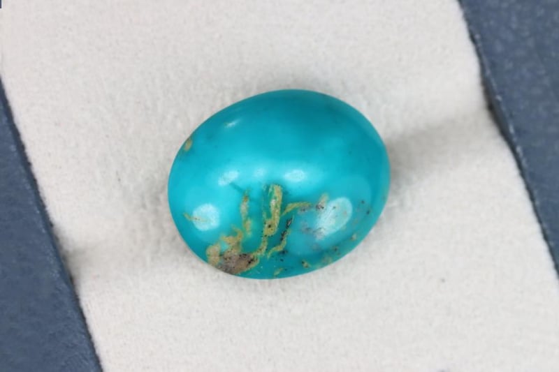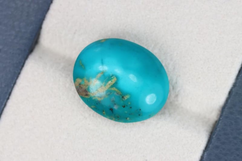 20.57 CARATS CERTIFIED NATURAL TURQUOISE Gemstone : Natural TurquoiseCertificate Number : Bigl20240122131802Weight : 20.57 CaratsColor : BlueMeasurement : 21.27 X 17.16 X 8.40 MmShape : Oval CabochonQuantity : 1 PieceOrigin : IranComments : Natural Pyrite Inclusions• Use The Qr Code On The Packaging To View And Download The Certificate. • Verify Report Online At Www.Bangkokinternationalgemlab.Co Condition: Good - Refer Images 01611161+6