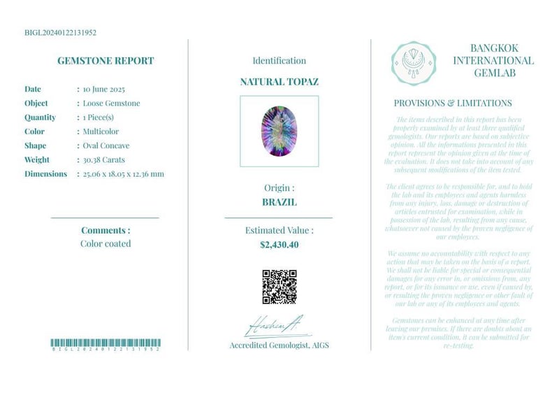• Verify Report Online At Www.Bangkokinternationalgemlab.Co