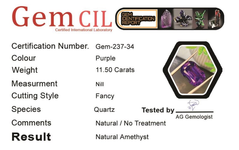 11.50 CARATS NATURAL QUALITY BRAZILIAN AMETHYST 11.50 Carats Natural Quality Brazilian Amethyst Stone = Natural AmethystWeight = 11.50 CaratsTreatment = Natural Colour = Purple Cut = Fancy Note = Gem Cil, Certified, Precise Custom Cut (Not Commercial) Condition: Good - Refer Images 0488463+34