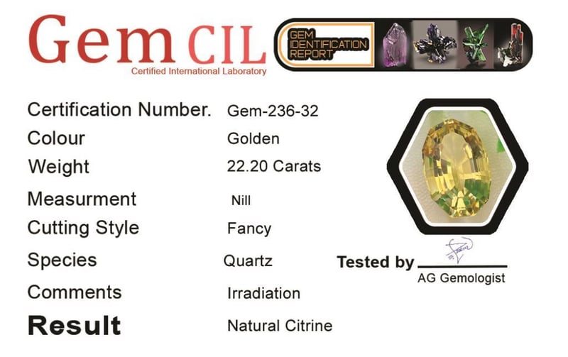 22.20 CARATS NATURAL GOLDEN CITRINE 22.20 Carats Natural Golden CitrineStone = Natural CitrineWeight = 22.20 Carats Colour = Golden Cut = Fancy Lustre = Excellent Treatment = Irradiation Quality = (Premium)Note = Precise Custom Cut (Not Commercial) Condition: Good - Refer Images 0488462+32