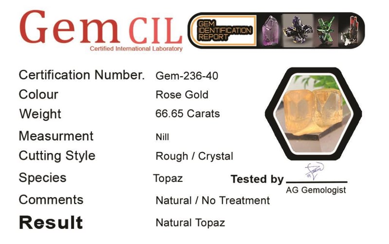 66.65 CARATS NATURALLY TERMINATED IMPERIAL ROSE GOLD TOPAZ SPECIMEN