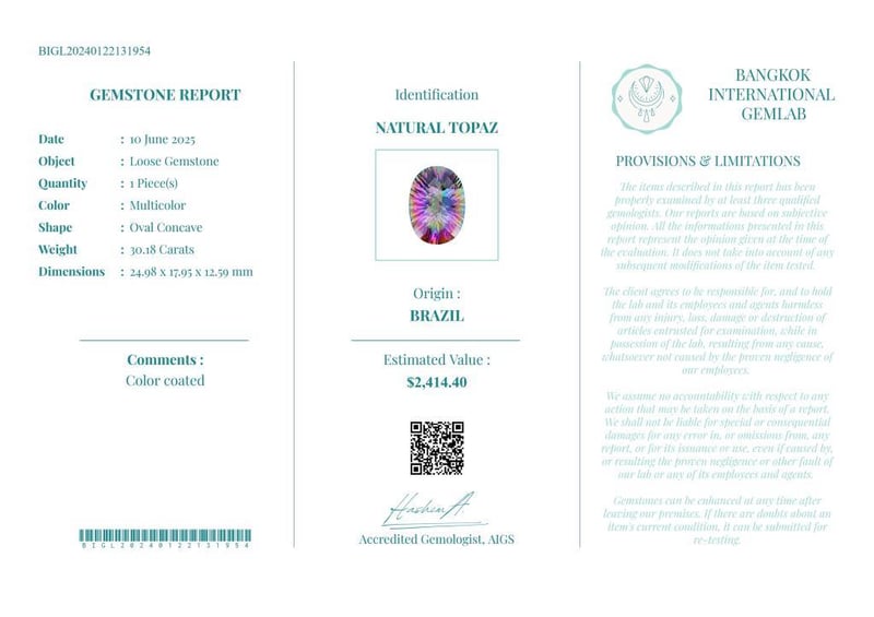 • Verify Report Online At Www.Bangkokinternationalgemlab.Co