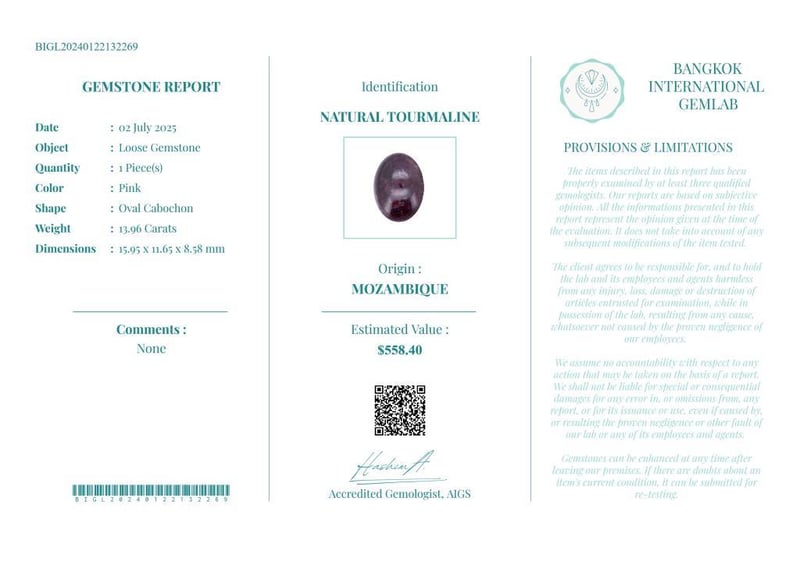 • Verify Report Online At Www.Bangkokinternationalgemlab.Co