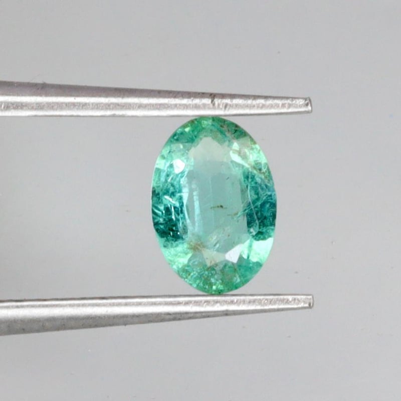 NATURAL 0.63CT OVAL FACET BLUESISH GREEN EMERALD