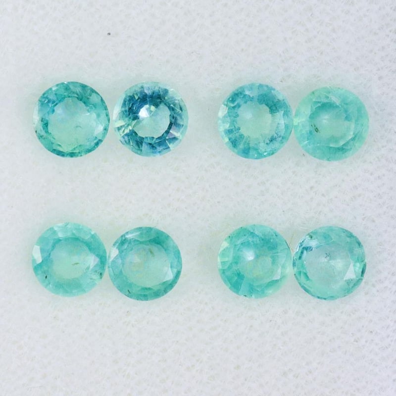 Natural 3.81Ct Round Facet Blueish Green Emeralds Lot 8 Piece