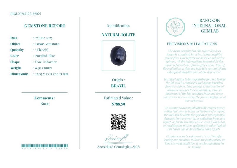 • Verify Report Online At Www.Bangkokinternationalgemlab.Co
